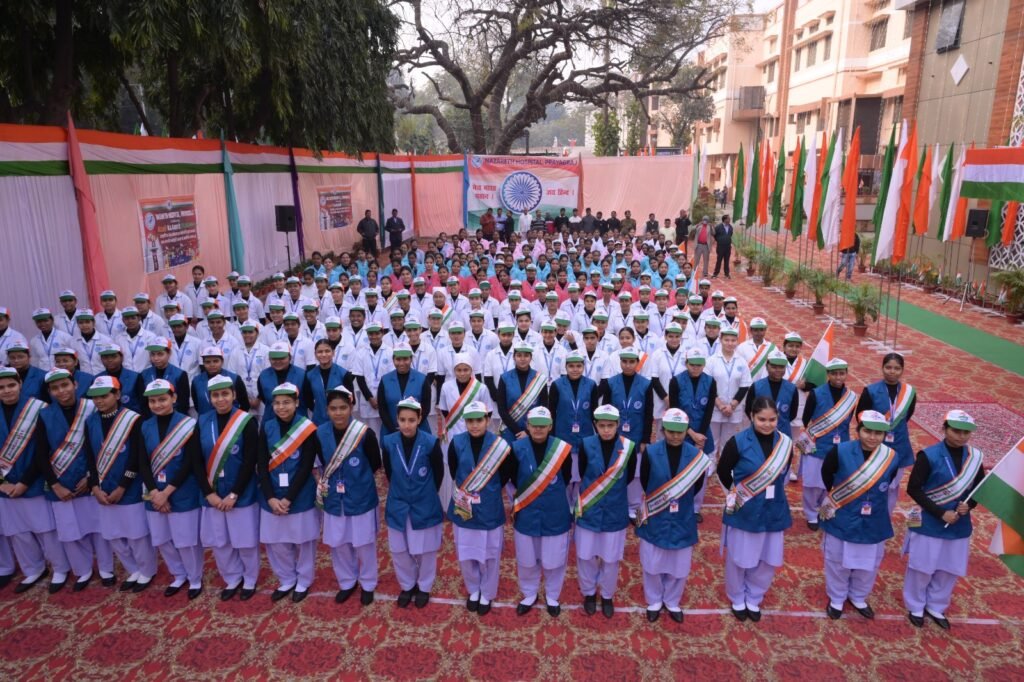 प्रयागराज:नाजरेथ हस्पिटल परिसर में 77वाँ गणतंत्र दिवस देशभक्ति के उत्साह के साथ मनाया गया। कार्यक्रम का शुभारंभ हस्पिटल कोयर द्वारा प्रस्तुत प्रार्थना गीत से हुआ, जिसके पश्चात सुश्री नाडा, ट्यूटर द्वारा स्वागत भाषण दिया